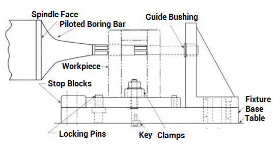 Fixtures are usually made from gray cast iron or steel parts by welding or bolting, and jigs generally use standard parts like bushes and screws.