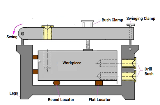Here are some of the most common types of jigs in manufacturing, along with their features, uses, and diagrams.