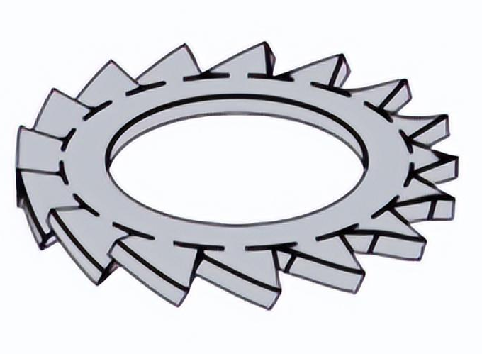 External serrated lock washers are used as springs on small components. Their dimensions are similar to those of the fastening screws and self-tapping screws used with three-dimensional sheet metal stampings. Serrated washers are primarily used to prevent bolts from loosening. They are primarily used to tighten components under bolt heads or nuts. This product conforms to ISO standards and is a single ring washer with offset openings.