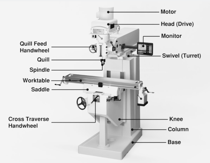 The quill is a cylindrical component that encloses the spindle and can move vertically up and down. This vertical movement is particularly useful for operations such as drilling and tapping. The quill can be moved manually or by using powered feed mechanisms.