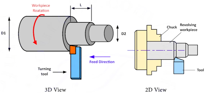 When To Use: This is often used in the production of parts with multiple sections of different diameters, such as shafts and collars. It also used to create workpieces with shoulders or steps, which can be found in parts like pulleys, flanges, and couplings.